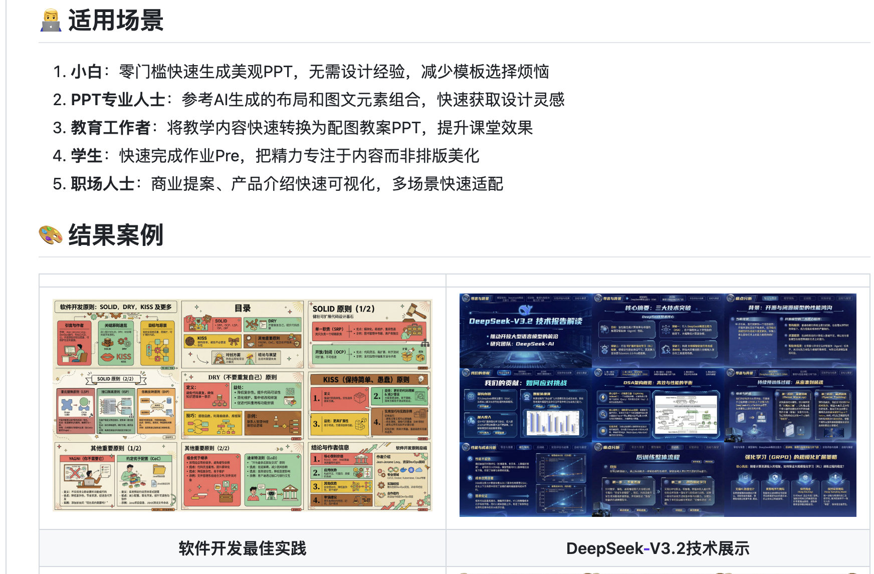| 🎨 PPT设计师 | 借AI创作灵感与风格样本 |